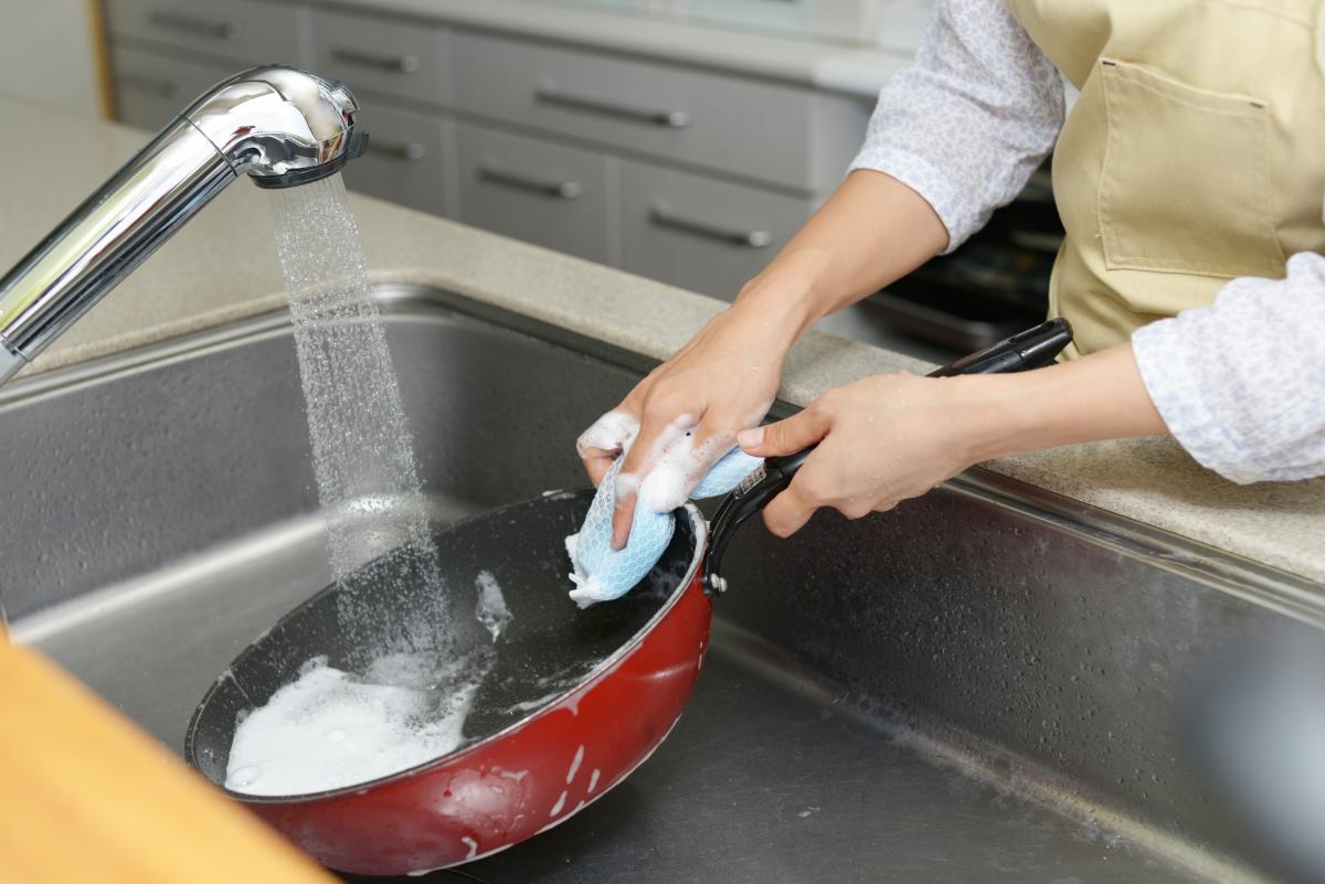 料理後の手入れも、焦げ付きを防ぐ上で重要です。使用直後にフライパンを水で洗うと、急激な温度変化でフライパンが損傷する可能性があります。そのため、フライパンを自然に冷まし、温かいうちに柔らかいスポンジで洗うことが理想的です。洗剤の使用は避け、水またはお湯だけで洗い、その後よく乾燥させることが大切です。