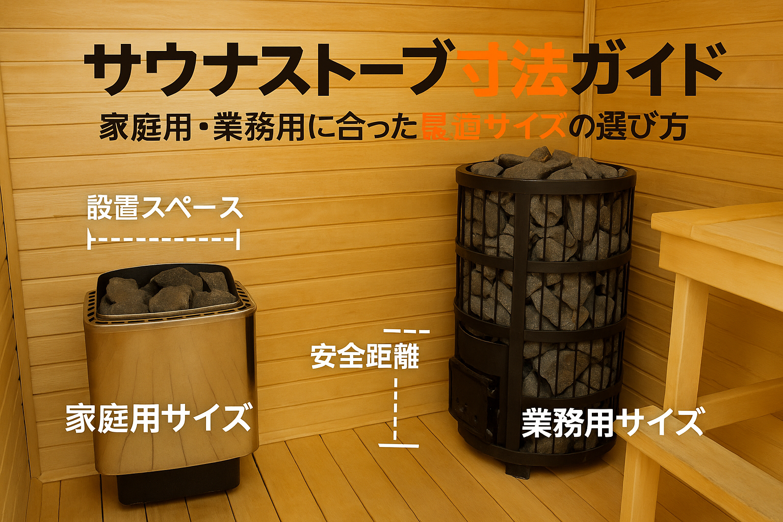 サウナストーブの寸法完全ガイド、家庭用から業務用の最適サイズを解説