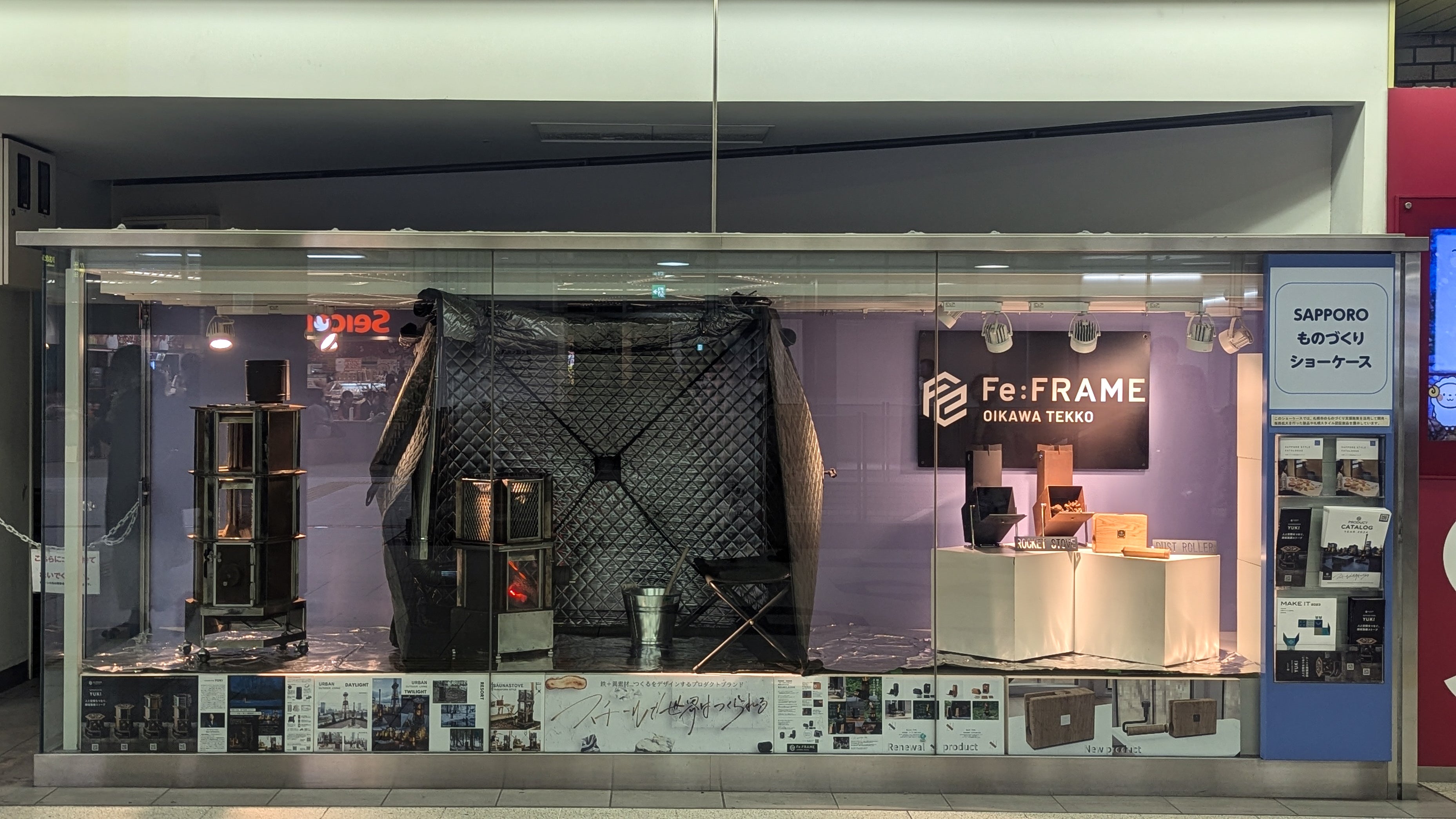 札幌市営地下鉄東西線大通駅コンコースにあります札幌ものづくりショーケースにて2024/11/13から11/26 15時くらいまで Fe:FRAMEの製品を展示しています。