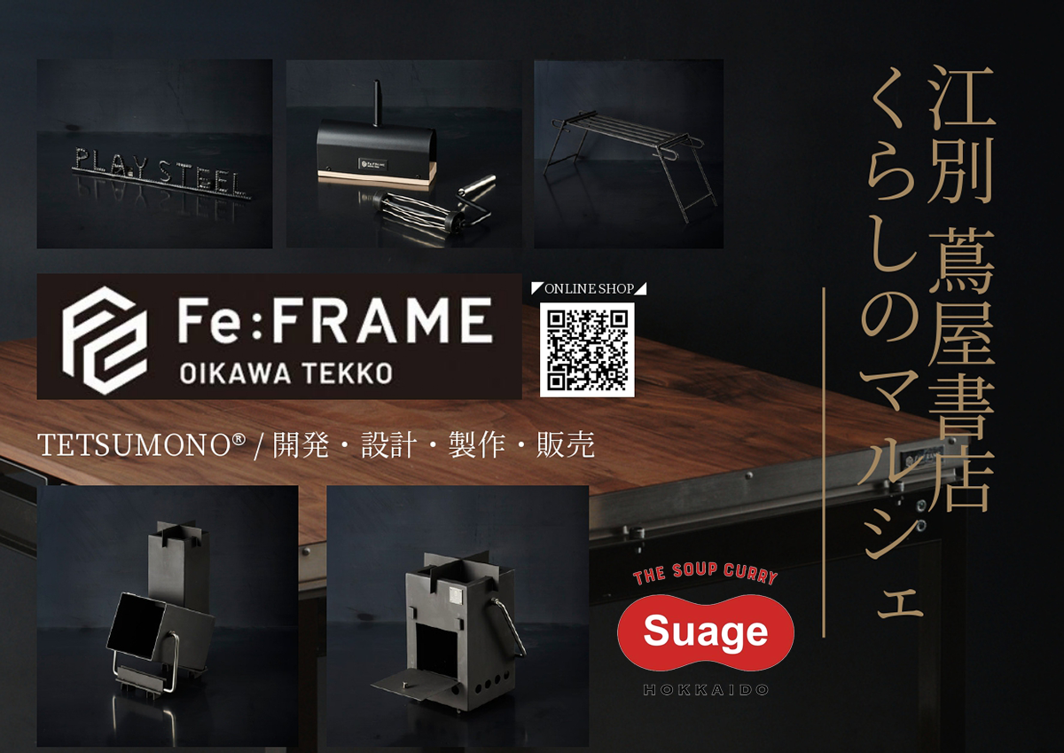 チラシにも記載があるようにFe:FRAMEのアウトドア製品お買い上げの方に、Suageレトルトをおひとつプレゼントいたします。(Suageさまからのご厚意です…!)